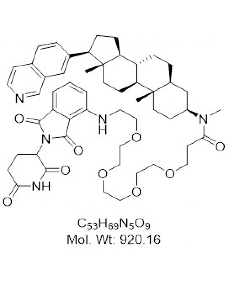 | Smiles | O=C(N([C@H]1CCC2(C)C3CCC4(C)[C@@H](C5=CC6=C(C=C5)C=CN=C6)CCC4C3CCC2C1)C)CCOCCOCCOCCOCCNC7=CC=CC(C(N8C(CC9)C(NC9=O)=O)=O)=C7C8=O |