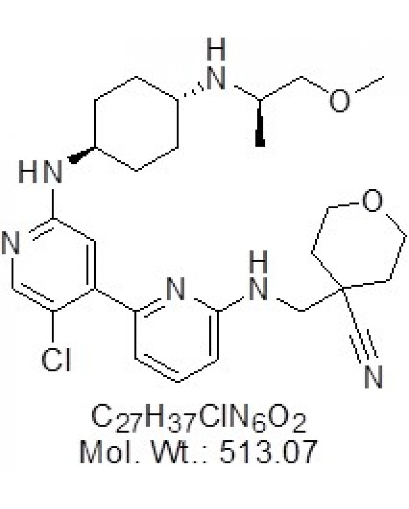 | IUPAC/Chemical Name | 4-[[[5'-Chloro-2'-[[trans-4-[[(1R)-2-methoxy-1-methylethyl]amino]cyclohexyl]amino][2,4'-bipyridin]-6-yl]amino]methyl]tetrahydro-2H-pyran-4-carbonitrile |