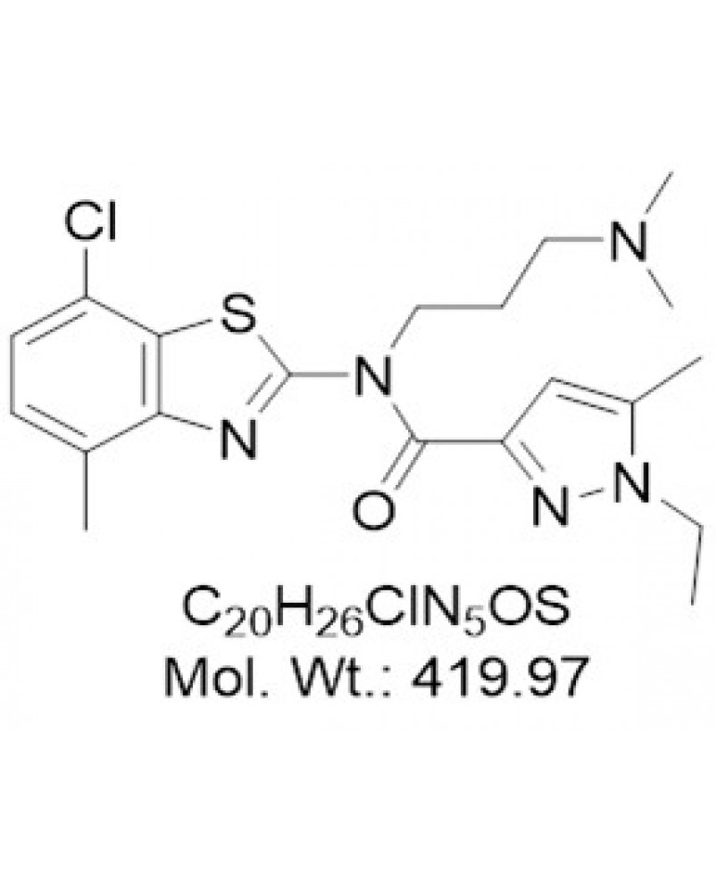 | Smiles | O=C(C1=NN(CC)C(C)=C1)N(C2=NC3=C(C)C=CC(Cl)=C3S2)CCCN(C)C |
